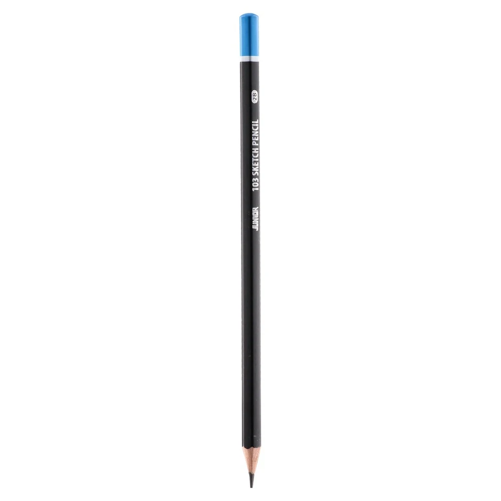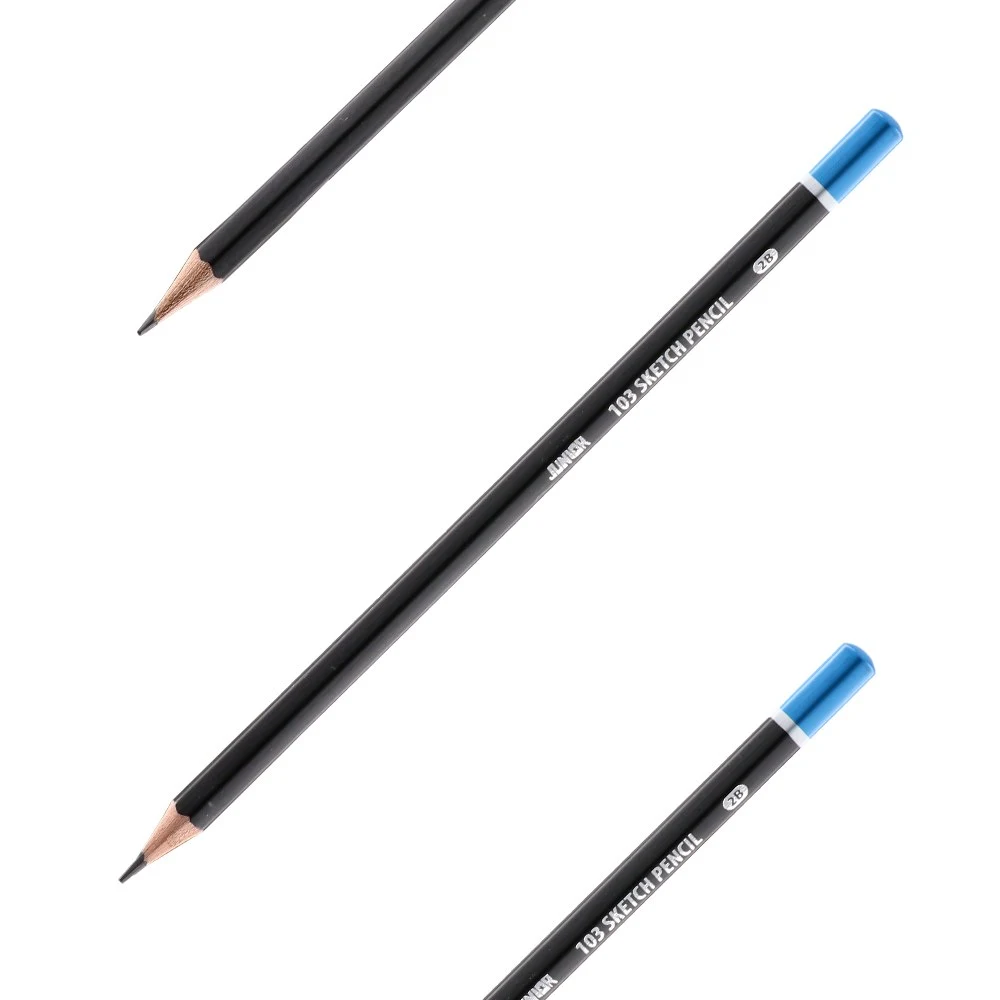 103, graphite pencil, 2B. Sleek black wood-cased barrel with blue dipped end and clear grade marking. Pre-sharpened for immediate use. The 2B core gives dark, versatile lines for sketching and notes. Minimal, contemporary styling enhances presentation for retail or studio sets.
