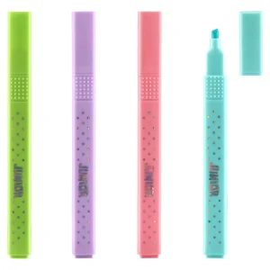 105 Neon, highlighter, narrow, mix, 4pcs. Slim plastic barrels in mixed neon shades with a dotted finish. Narrow chisel tip for accurate underlining and fine highlights. Textured grip for steady handling. Trend-forward look with strong shelf appeal for office or school lines.