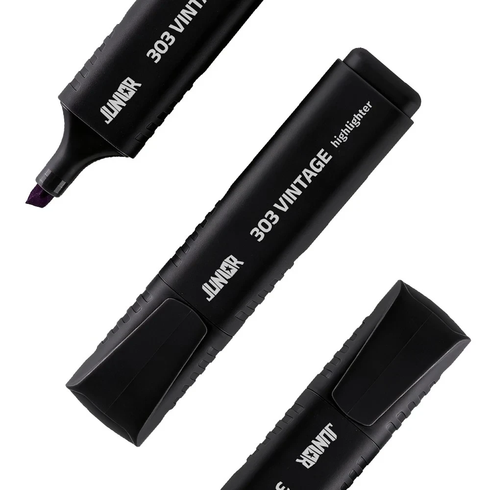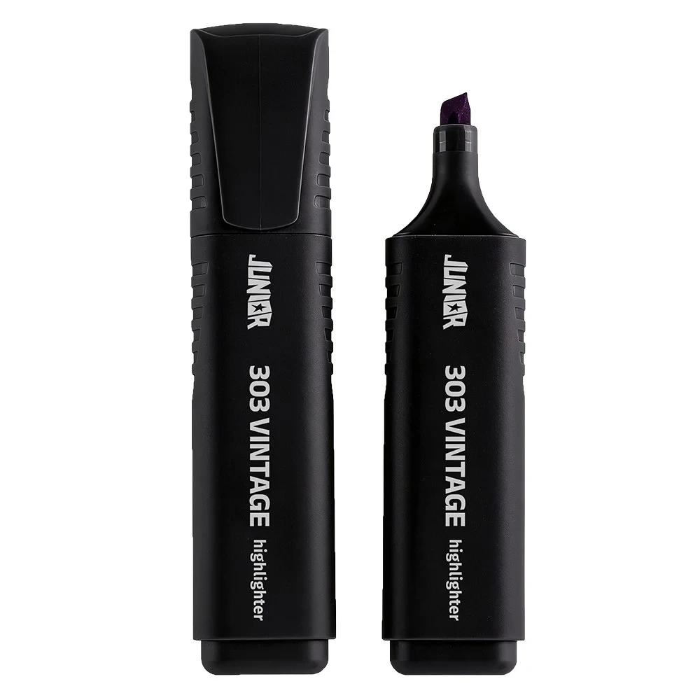 303 Vintage, highlighter, wide, black. Wide chisel tip provides broad, even coverage and crisp edges for quick marking. Matte black, durable plastic barrel with textured side grips offers control and a sleek, on-trend look. Reliable performance with strong shelf appeal for resellers.