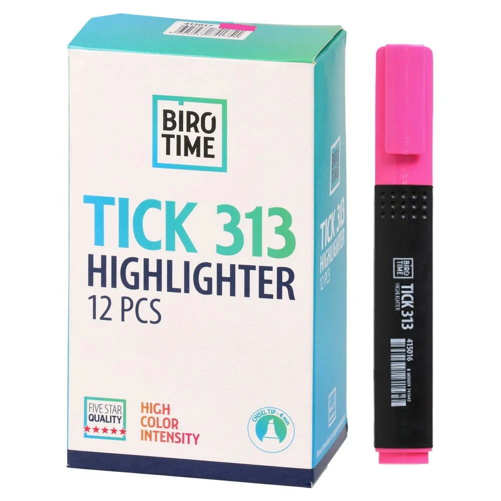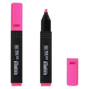 Sleek two-tone highlighter in pink with a black rectangular barrel. Chisel tip supports precise underlines or broad highlighting. Textured grip enhances control. Durable plastic construction and vivid color ensure clear marks and strong shelf appeal for professional buyers.