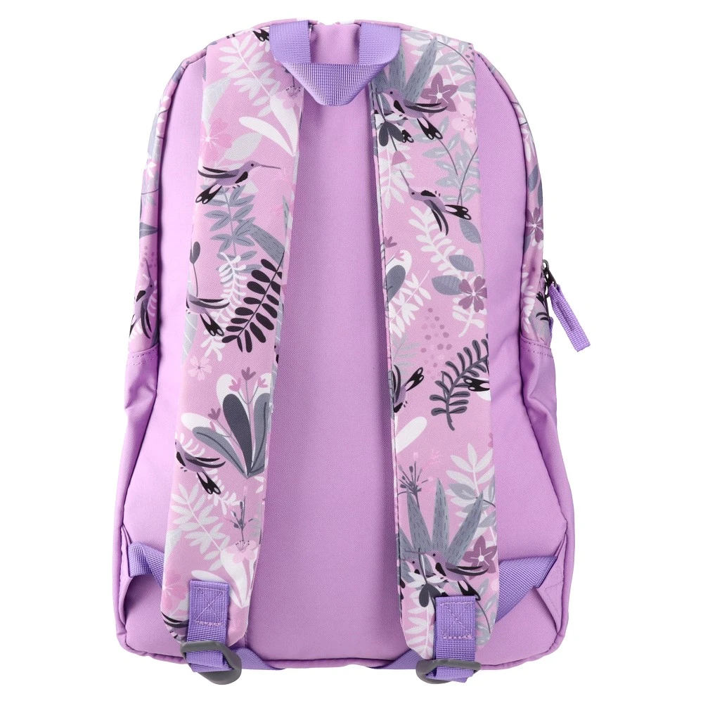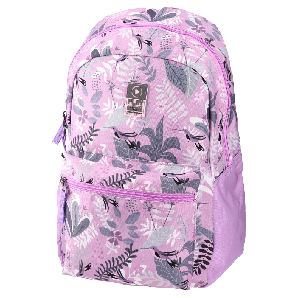 4Pack, backpack, X53: Trend-led lilac backpack with all-over botanical print. Durable fabric with matching zippers. Practical layout with a main zip compartment and two front zip pockets. Eye-catching, shelf-ready design for seasonal and back-to-school assortments.