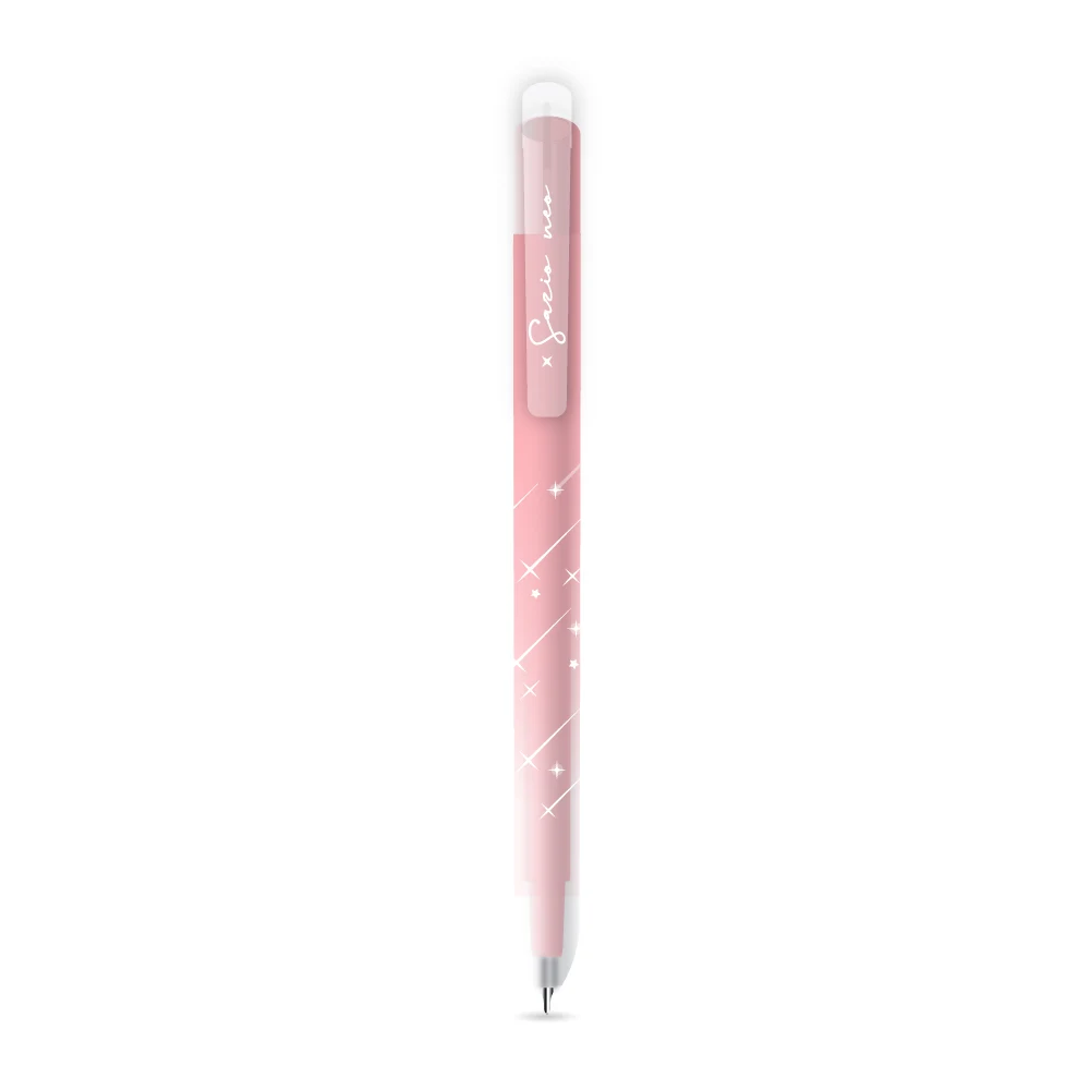 Akira M metallic pink gel pen showcases a sleek barrel with white star detailing for a trend-led look. The 1 mm point lays down bold gel lines suited for headings, cards, and decorative notes, making it a strong seller for curated stationery ranges and gifting selections.