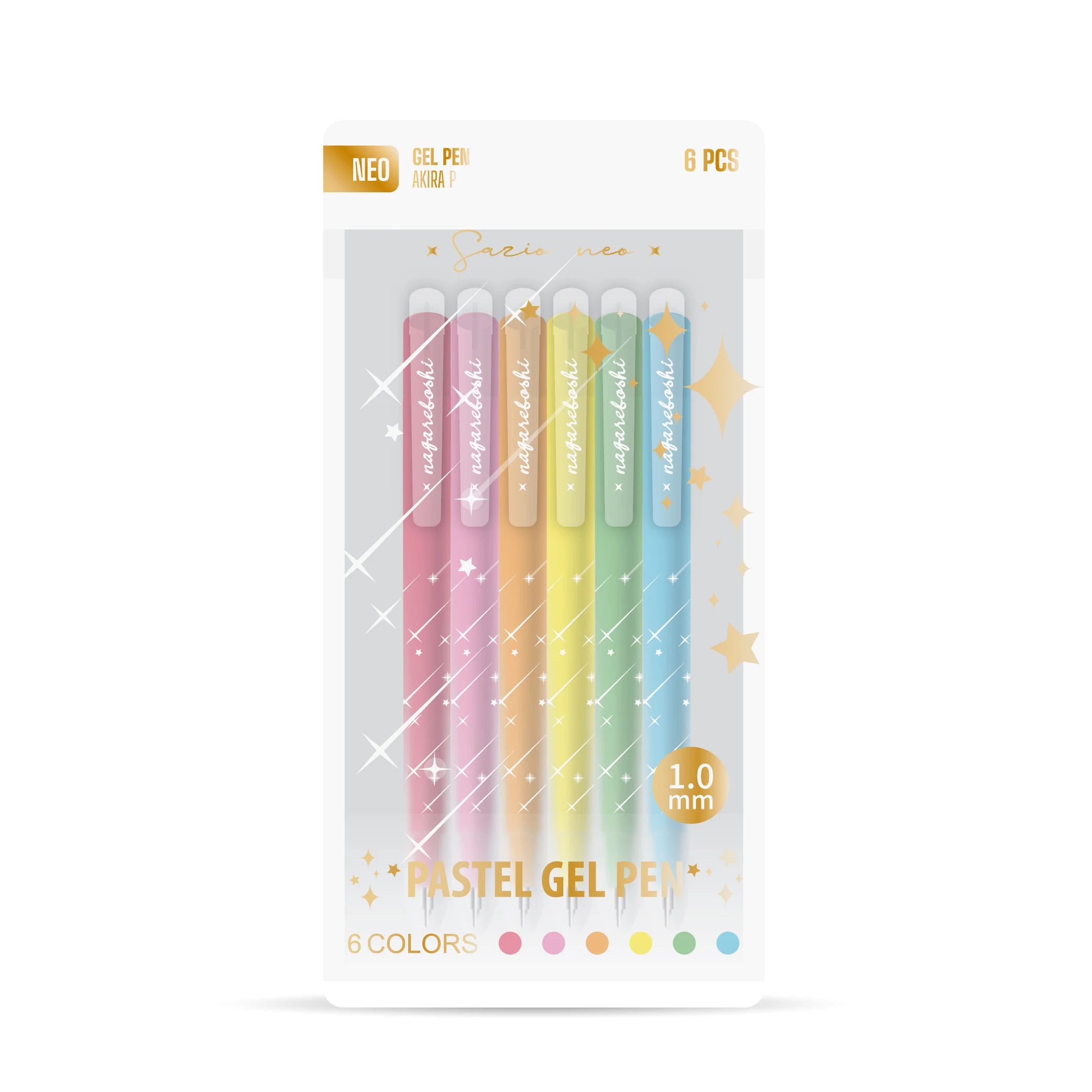 Akira Pastel, gel pen, pastel, mix, 1mm, 6pcs