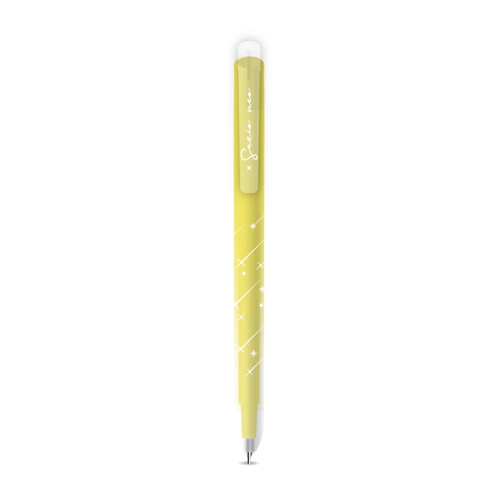 Akira Pastel gel pen in yellow pairs a trendy pastel aesthetic with daily reliability. The 1 mm point delivers smooth, bold lines. Durable plastic barrel with soft pastel finish, subtle white graphic print, metal tip and secure clip. A sellable pick for retail assortments and office kits.