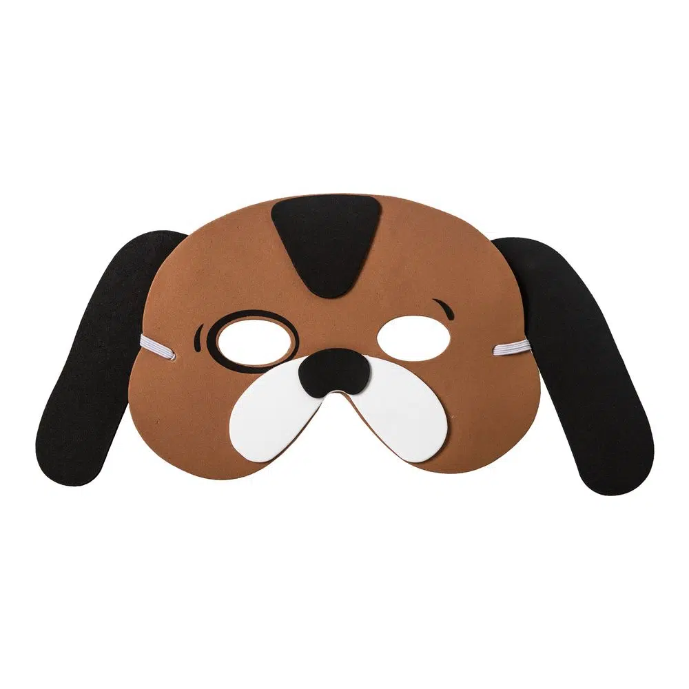 Animal Masky, EVA foam dog mask featuring a modern, playful design with layered brown, black and white details and long floppy ears. Made from durable EVA foam with smooth die-cut eye openings and side elastic for easy fit. Eye-catching, lightweight and retail-ready for themed events and promotions.