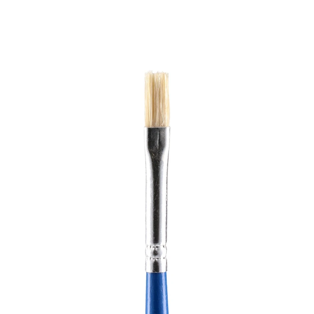 Azure Flat Brush 4 features a modern blue handle and secure metal ferrule. The flat, compact bristle head offers crisp edges and controlled coverage for detail work. A clean, retail-ready look paired with reliable build quality suits studios, classrooms, and kits.