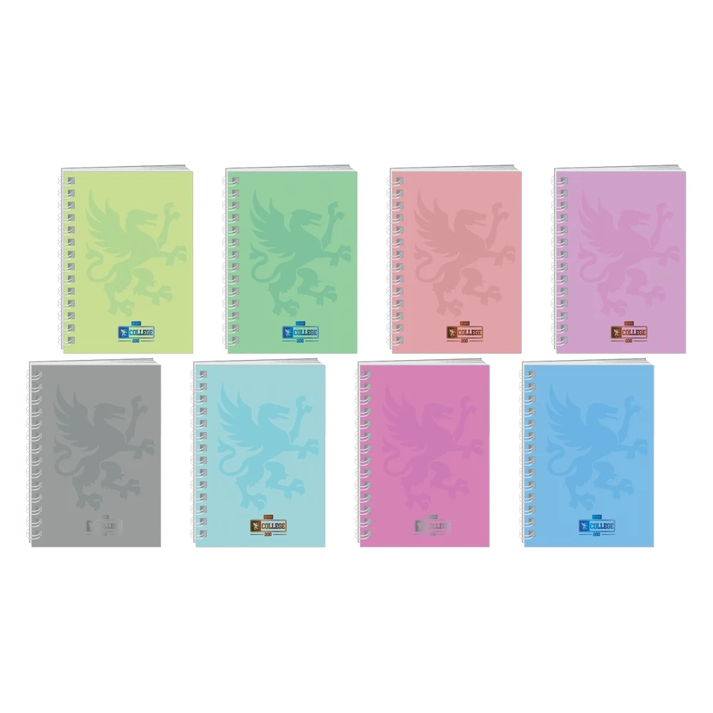 Compact A6 spiral notebook with 100 lined sheets. Trendy pastel covers in assorted colors with a subtle griffin graphic elevate shelf appeal. Reliable white spiral allows flat use and quick page turns. Compact format maximizes shelf density and on-the-go usability.