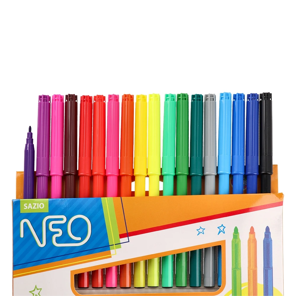 Brilli, fibre pens, 18pcs. A vibrant assorted set with vivid colors for coloring, sketching, and outlining. Fibre tips ensure smooth application. Durable plastic barrels with secure caps. Trendy, eye-catching window box boosts merchandising and enables quick color selection.