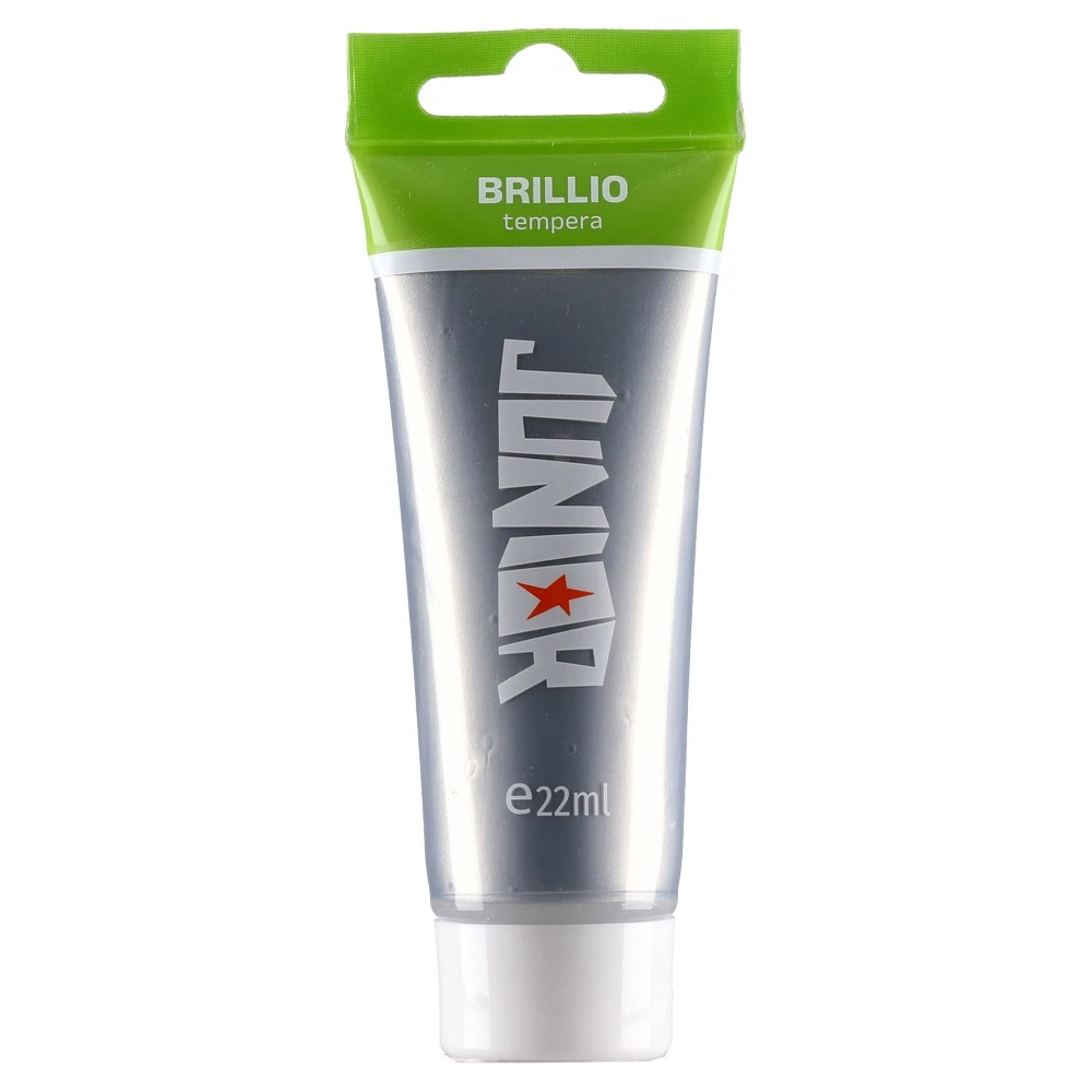 Brillio metallic, tempera, silver, 22ml. Metallic silver tempera in a compact squeeze tube. Sleek, modern design with hang slot enhances shelf impact. Transparent body displays the shade for easy selection. Quality packaging supports clean handling and precise dispensing.