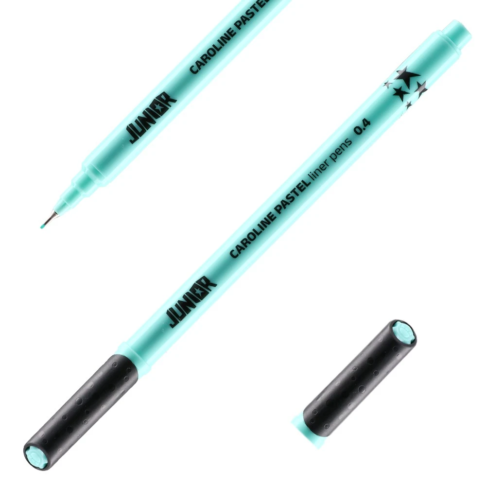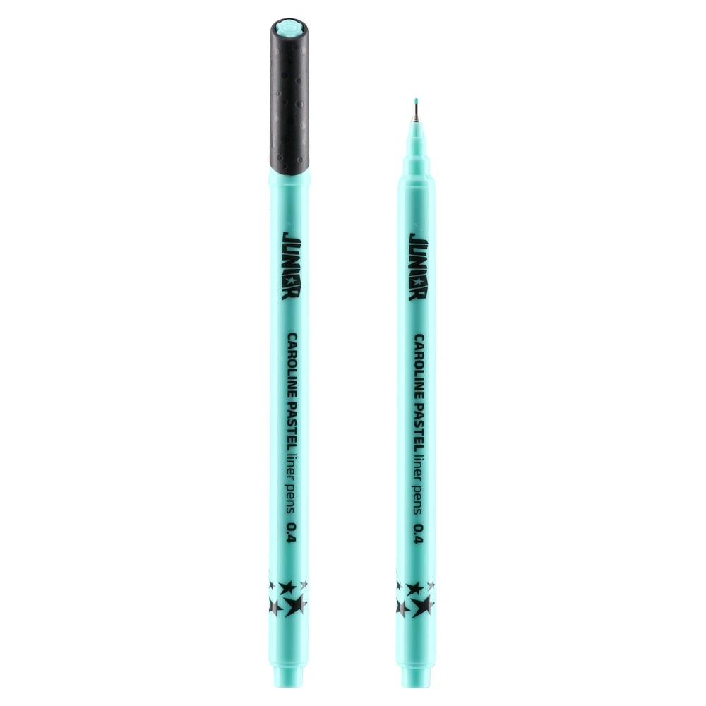 Caroline pastel, liner, 0.4mm, blue. Trend-forward mint barrel with contrasting textured cap for secure handling. Fine metal-clad tip delivers crisp, consistent lines for notes, sketching, and detail work. Durable plastic construction for reliable, everyday professional use.