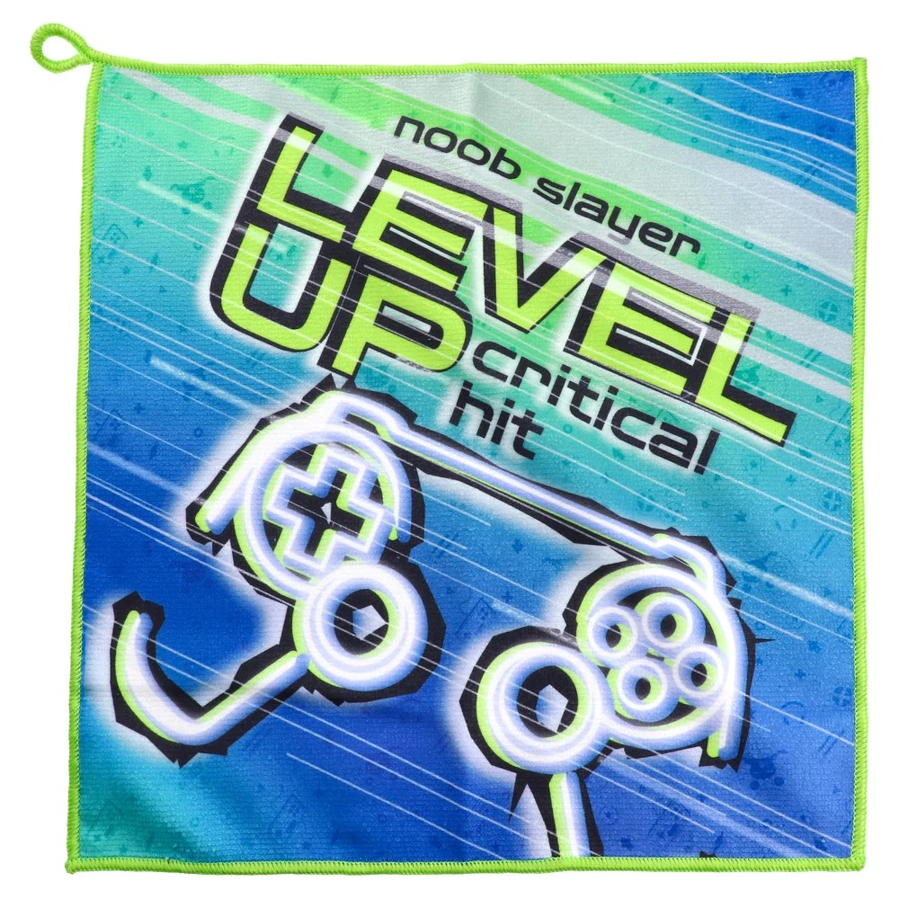 Cleanyx wiping cloth, 30×30 cm, featuring a joystick graphic in bold blue‑green tones. Neon overlock edging and a corner hanging loop create a clean, retail-ready finish. Trend-driven gaming design for strong sell-through; well-finished fabric for everyday wiping of screens and surfaces.