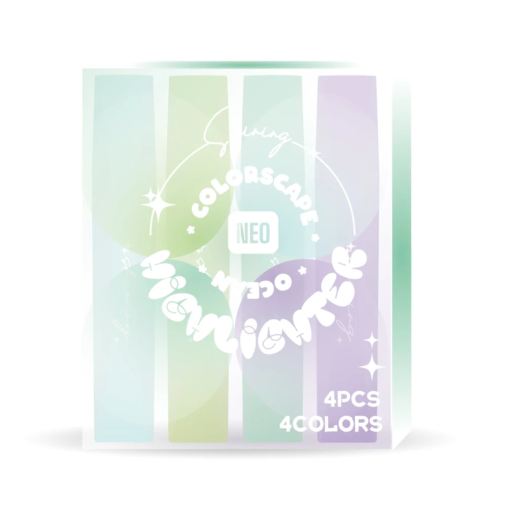 Colorscape, highlighter, chisel tip, mix, 4pcs, Ocean: A curated set of four chisel-tip highlighters in cool ocean-inspired hues. Trend-forward pastel tones suit planners and office notes. Crisp chisel edges enable broad swaths or fine underlines. Packaged as a coordinated 4-color set.