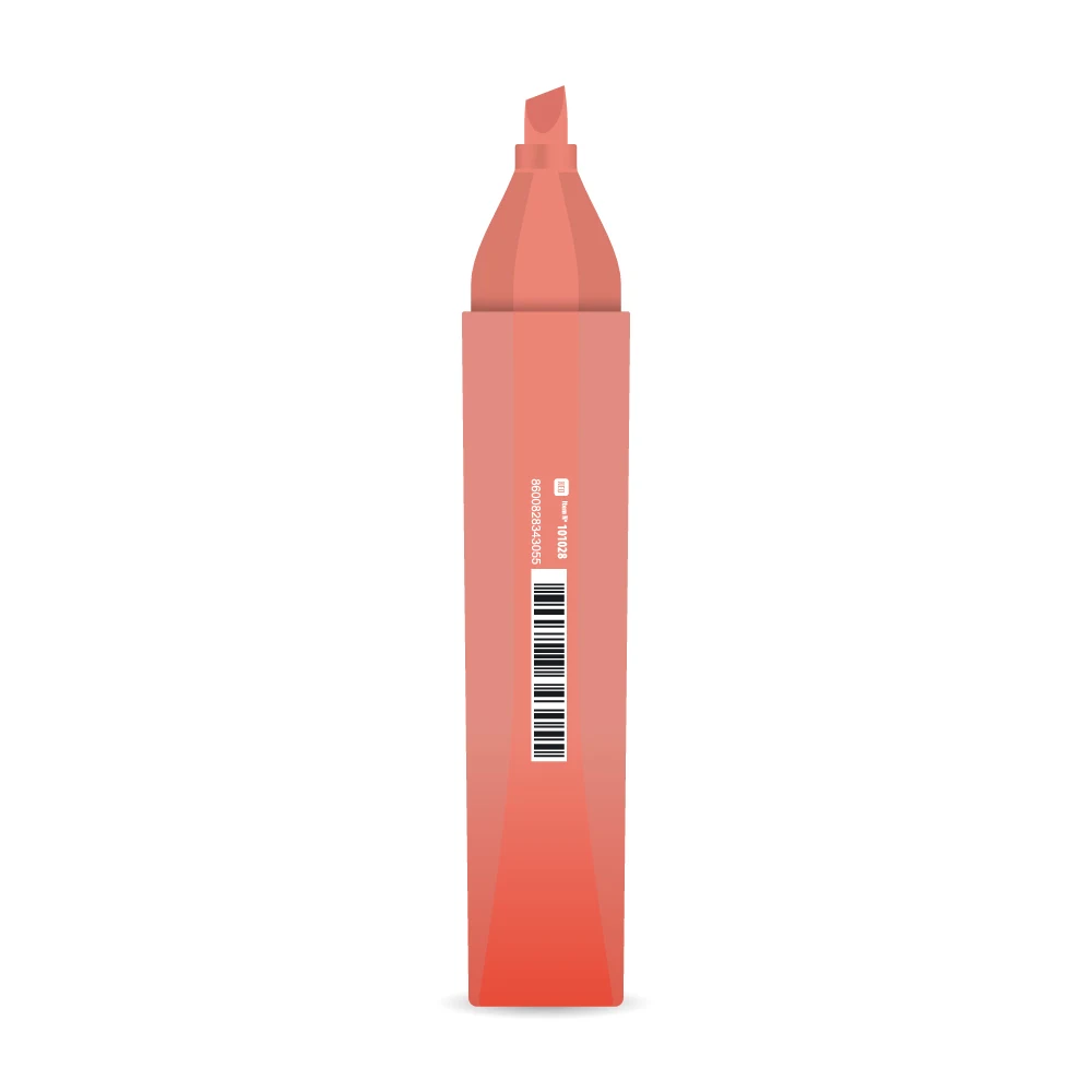 Colorscape highlighter, red, featuring a precise chisel tip for broad swaths or crisp underlines. Trend-forward faceted barrel elevates workspace aesthetics and improves grip. Clean, even coverage to keep notes readable. Barcoded body streamlines inventory for retail and office supply.
