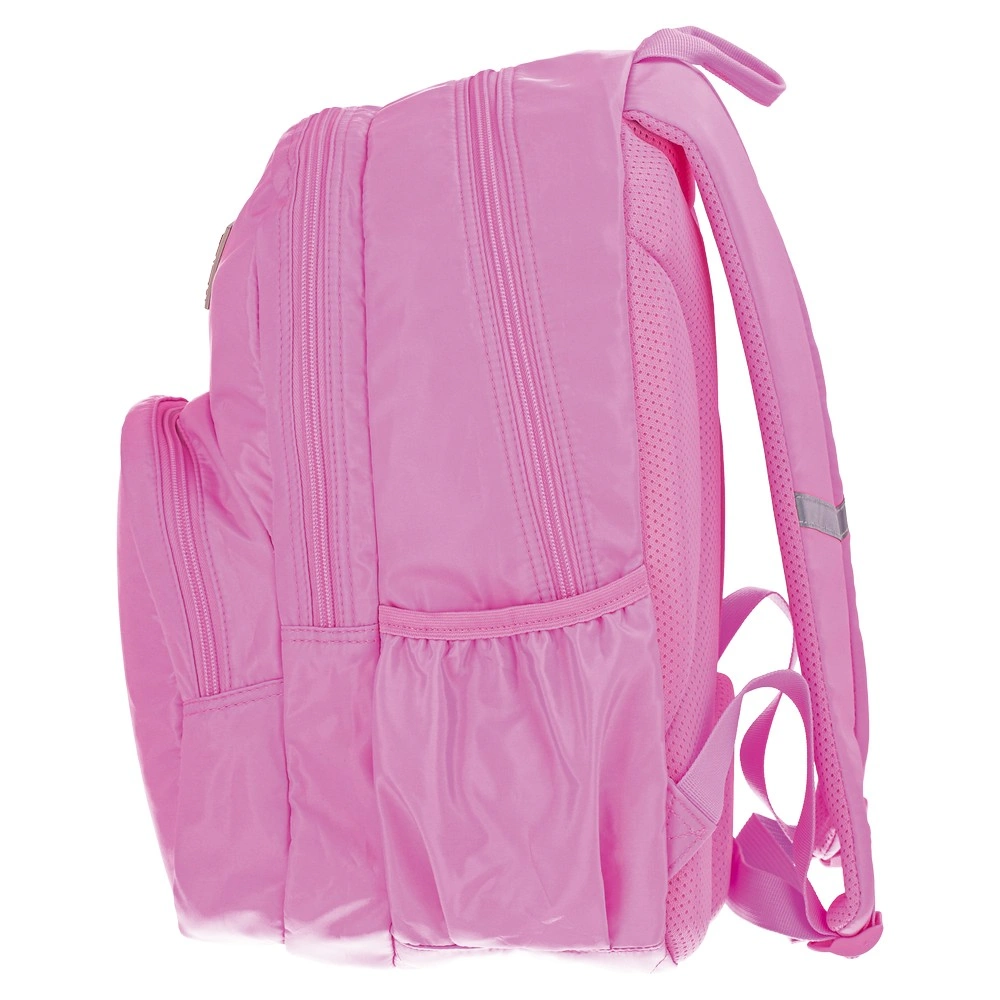 Cool, backpack, pastel pink: Trend-forward pastel hue with smooth, glossy fabric. Spacious main compartment, two front zip pockets, and elastic side pockets for quick access. Durable build, clean stitching, branded patch, and reliable zips support strong sell-through and everyday carry.