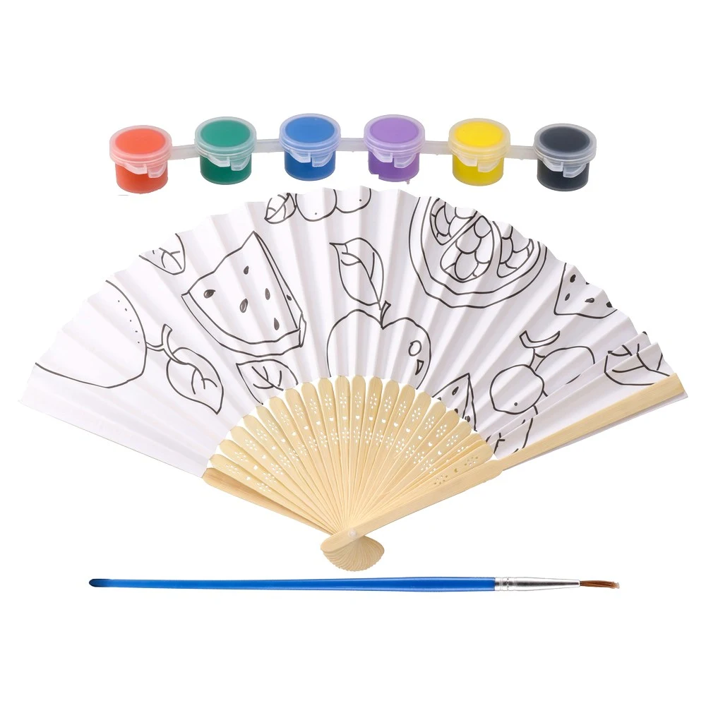 Crafty creativ, creative coloring set, fan. DIY folding fan with wooden ribs and a preprinted outline ready to paint. Includes six paint colors and a fine brush. Packed in a hang-ready polybag with header card for peg display—engaging, on-trend craft for workshops and retail assortments.