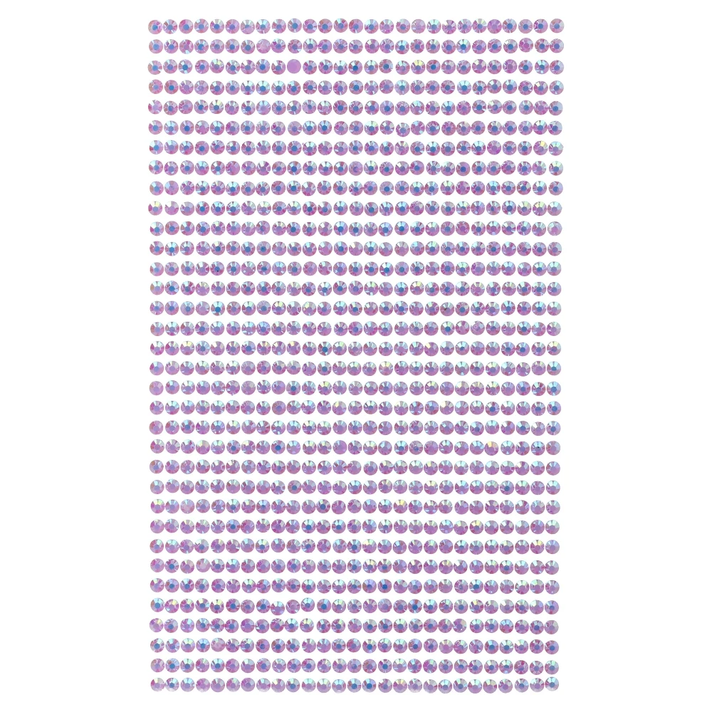 A sheet of round, faceted purple zircons with an iridescent finish, arranged in precise rows. Trendy, high-shine accents for cards, gifts, packaging, and décor. Uniform sizing supports clean application and professional results, enhancing sell-through and easy merchandising.