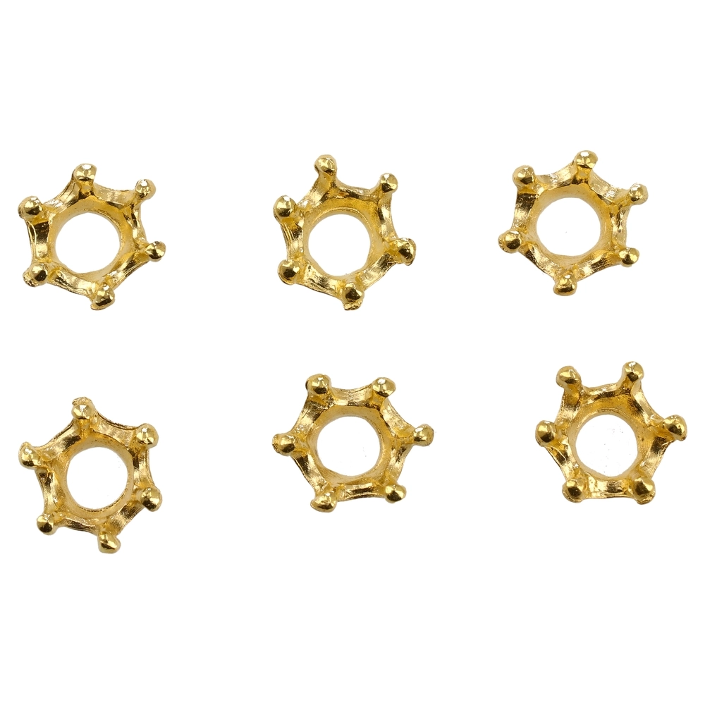 Set of 6 iron crown components in a gold tone. Sculpted, contemporary profile delivers a luxe accent for jewelry, accessories, and DIY decor. Durable iron for lasting use; open center enables clean integration with beads, cords, or layered designs. Trend-led detail, ideal for resale.