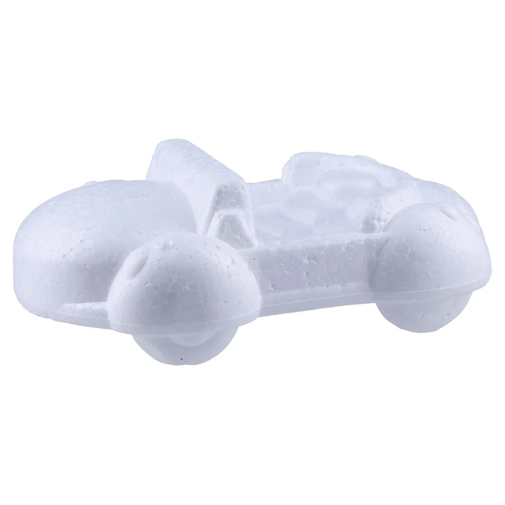 Compact 130mm car silhouette molded from white styrofoam. Trendy, minimalist form suits modern craft and display assortments. Lightweight and rigid with defined contours for neat results. Versatile base for bulk creative projects and merchandising.