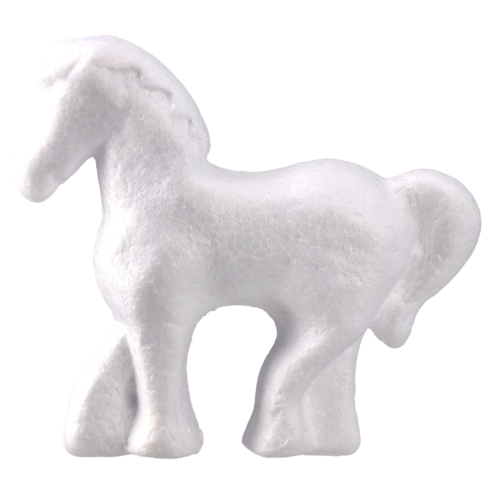 Crafty styro, styrofoam horse, 140mm: a lightweight white figure with clean contours and a modern, minimal look. Made from styrofoam for consistent shape and easy handling. Ideal for assortments, seasonal themes and visual merchandising. Supplied plain for customization.