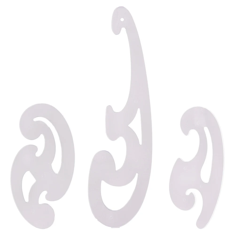 Curves, set of curves, 3pcs: Sleek transparent plastic curve rulers for accurate, smooth arcs and complex contours. Three assorted profiles support drafting, pattern making and illustration. Clear material ensures visibility for precise placement—reliable for professional use.