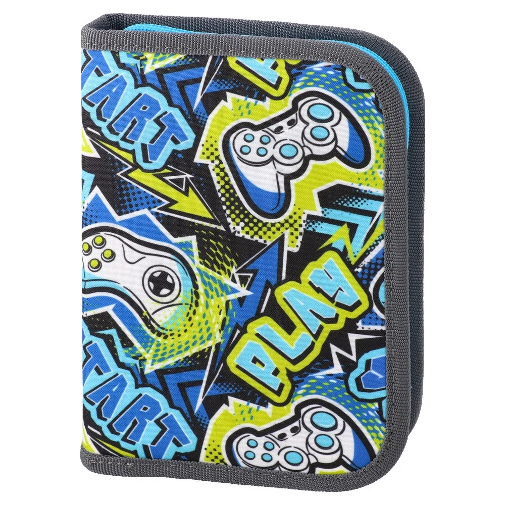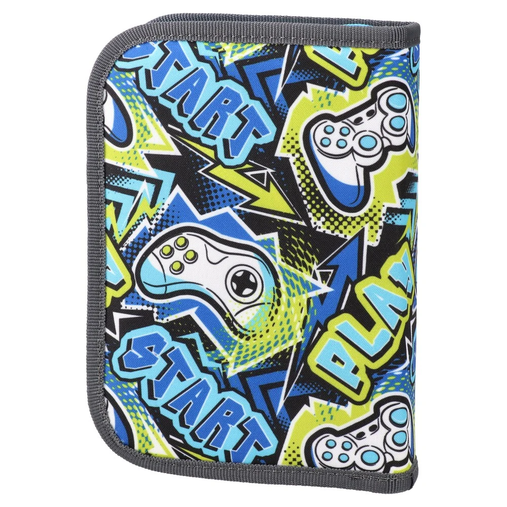 Decker, full pencil case, 1 zip, Gaming. Bold controller graphics and “Play/Start” lettering deliver on-trend appeal. Sturdy fabric cover, reinforced edges and single zipper for reliable daily use. Compact, shelf-ready format suited to back-to-school. High-contrast colors for strong in-store visibility.