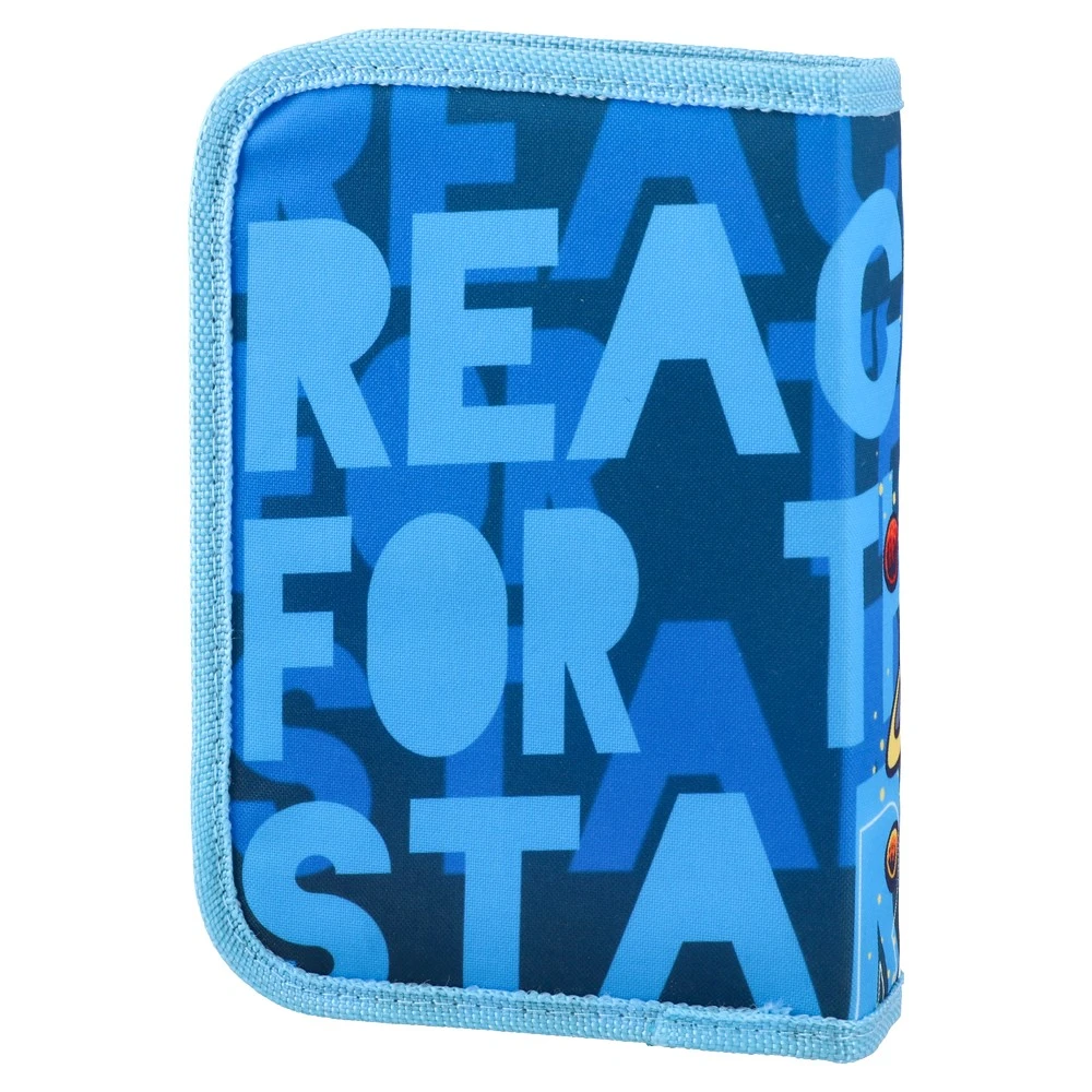 Decker, full pencil case, 1 zip, Space jumps. Striking astronaut artwork with vivid colors and bright blue trim for strong shelf appeal. Zip-around closure keeps contents secure; compact, book-style form fits school bags. Clean stitching and a durable finish support daily use.