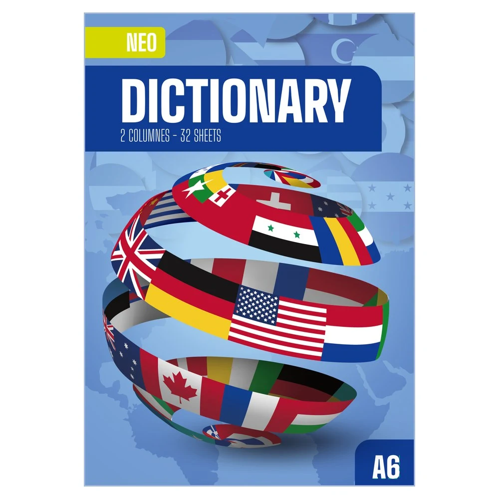 Compact A6 vocabulary notebook with an eye‑catching world‑flags cover. Efficient 2‑column layout for word–translation entries. Includes 32 sheets for coursework and drills. Trendy, professional look that sells well for schools, language centers, and corporate training.