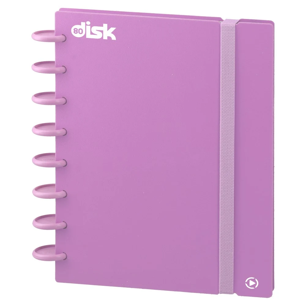 Trendy A4 notebook with disk binding in light pink. Rigid cover and durable elastic strap protect contents. Includes 80 squared sheets for clear, structured notes. Disks enable effortless page turning and a contemporary look ideal for offices, education and project teams.