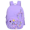 Donna Trolley, backpack with wheels, Lavander. Trendy pastel design with trolley functionality for versatile carry. Features a telescopic handle, padded shoulder straps, multiple zip compartments, and a textured front pocket with decorative charms for strong shelf appeal.