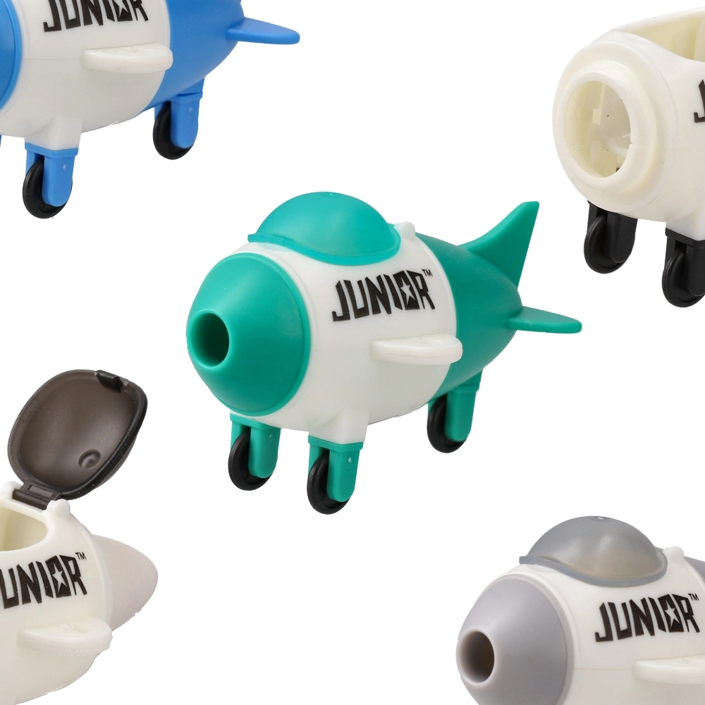Dos 136 is a trendy airplane-shaped single-hole sharpener with integrated eraser. Molded plastic body with a flip-top lid keeps the eraser protected. Supplied in a mixed color assortment for strong shelf impact, ideal to refresh modern school and stationery selections.