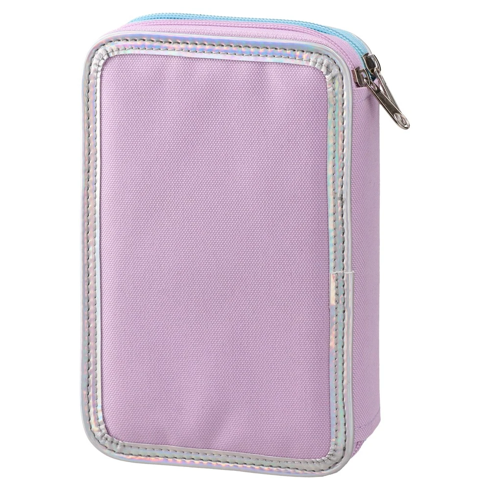 Iridescent pencil case with a holographic finish and playful “Some gave all” lettering. Two color‑coded zippers open dual compartments for organized storage. Durable stitched edging and tidy piping enhance longevity. Trend-forward look drives gift and back‑to‑school sales.