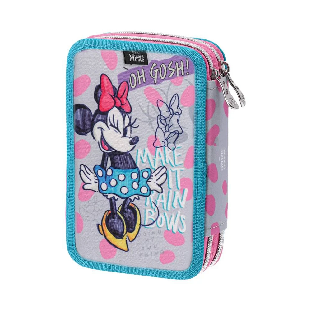 Double decker, full pencil case, 2 zipppers, Minnie Mouse, Oh Gosh