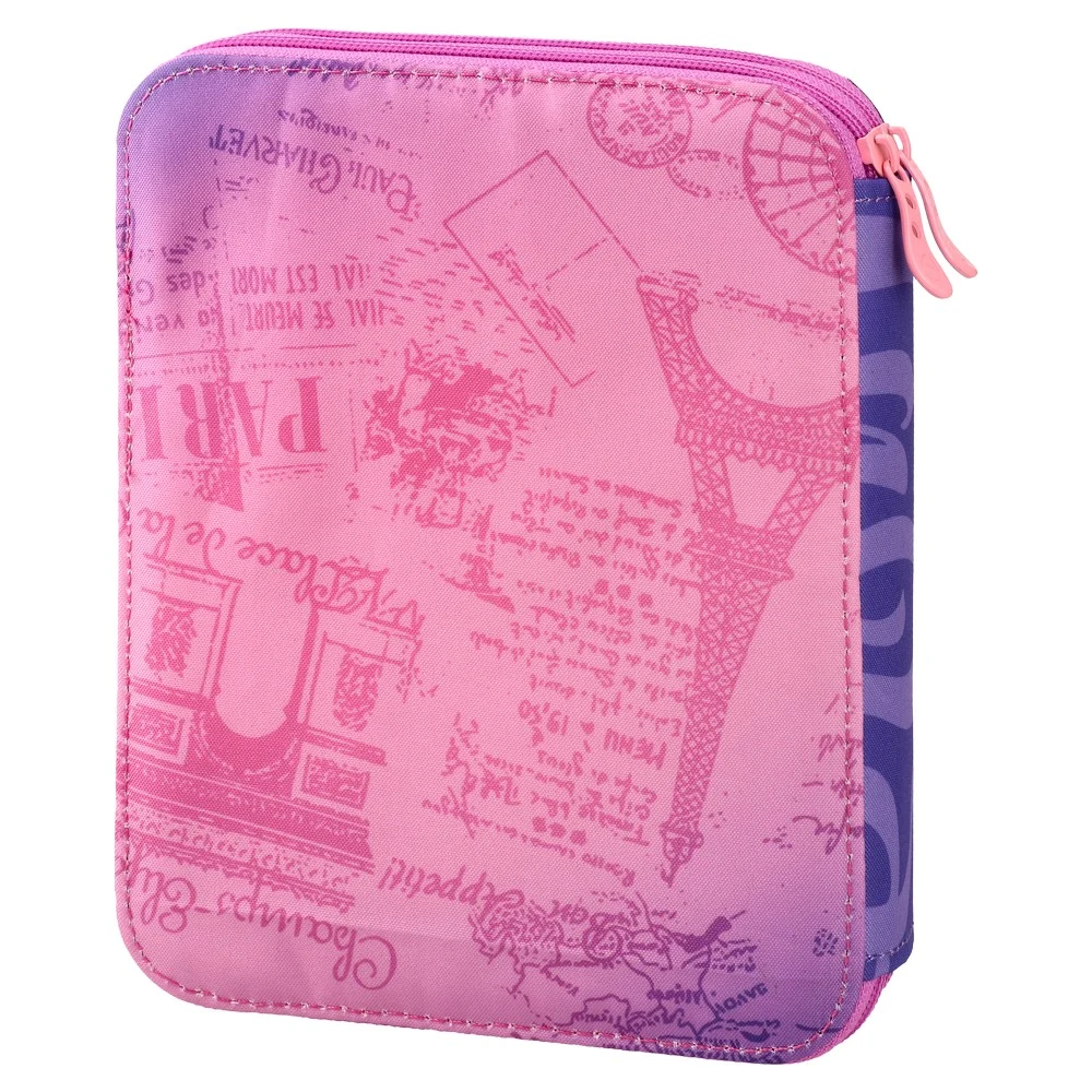 Trendy zip-around pencil case with bold Paris/Eiffel Tower artwork in pink and purple. Spacious Double grande format maximizes capacity while staying compact. Smooth zipper and neatly finished edges for everyday durability. Strong visual impact for back-to-school and gift programs.