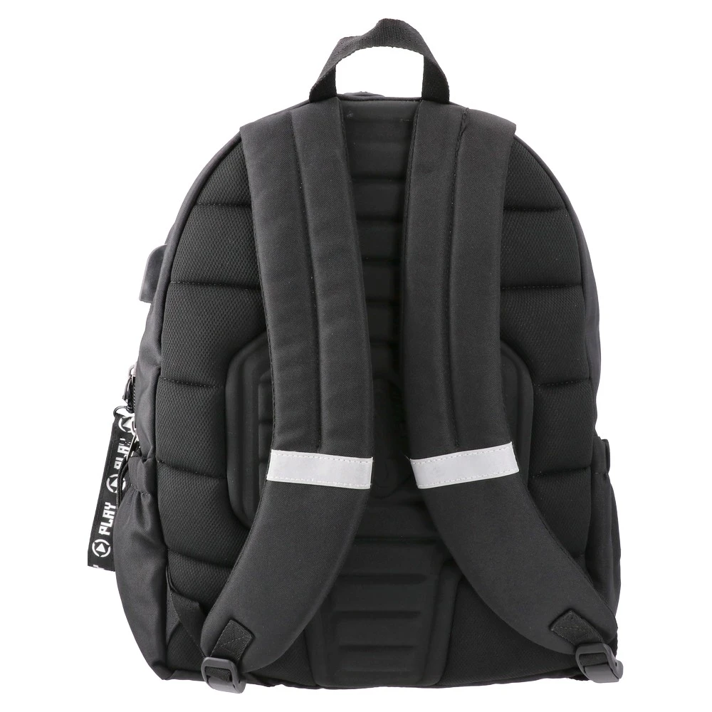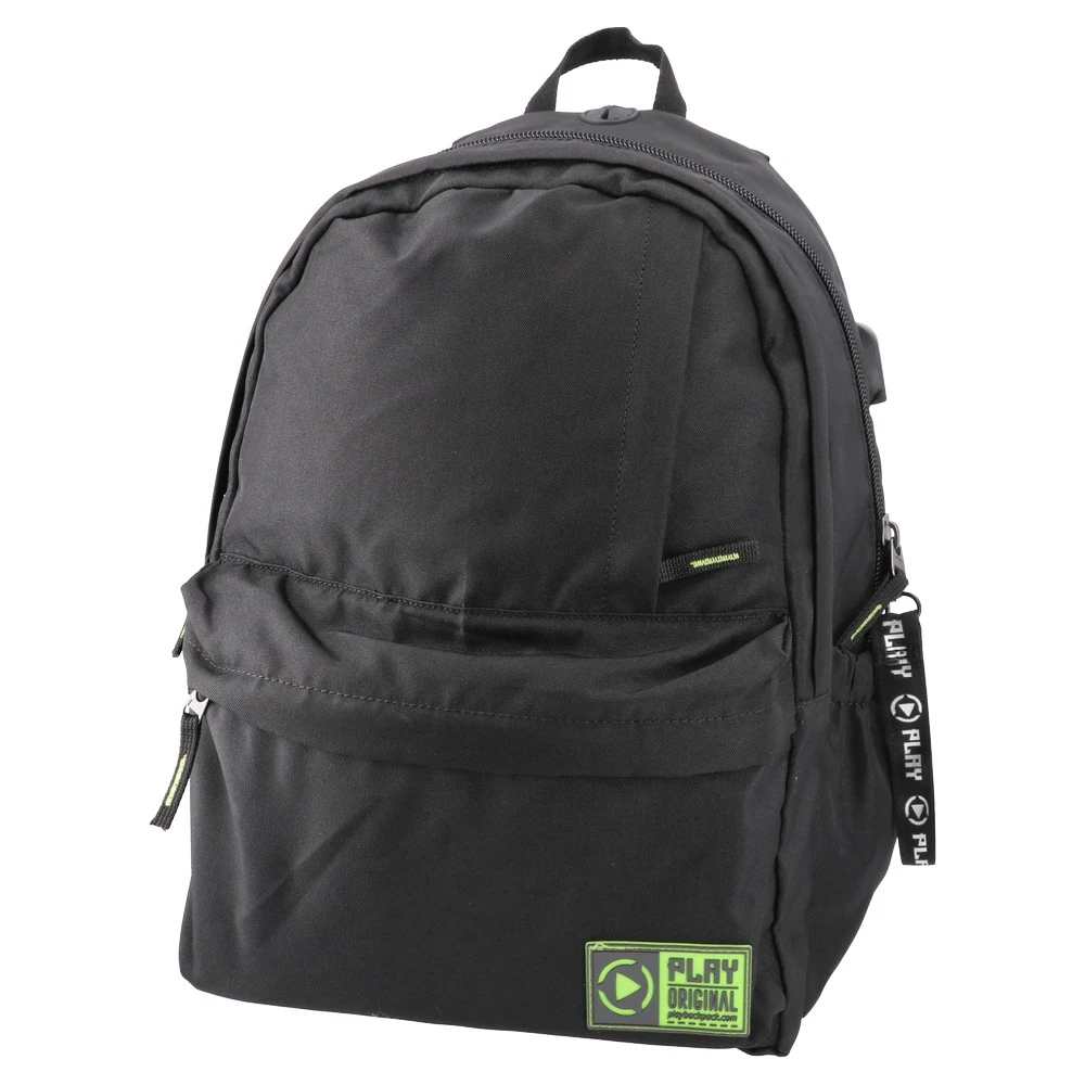 Double Pack, backpack, black 25 offers a clean urban look with commercial appeal. It features a spacious main compartment, a front zip pocket and smooth dual zippers with branded pullers. Black woven fabric with neon-green accents and logo patch communicates quality and trend-led design.