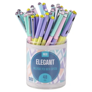 Elegant ballpoint pen in blue with a faceted crystal at the top. Slim, contemporary silhouette with a smooth pastel finish and polished clip. Trend-forward design elevates perceived value, offering consistent ballpoint performance for corporate gifting and retail.