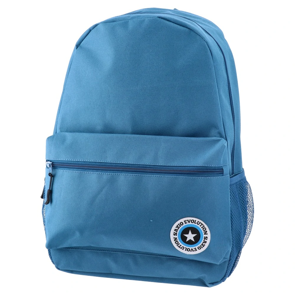 Evolution backpack in blue with a clean, contemporary silhouette. Built from durable fabric with a large front zip pocket, a side mesh pocket and a round logo patch. On-trend, versatile design that presents well for everyday use, campaigns and retail assortments.