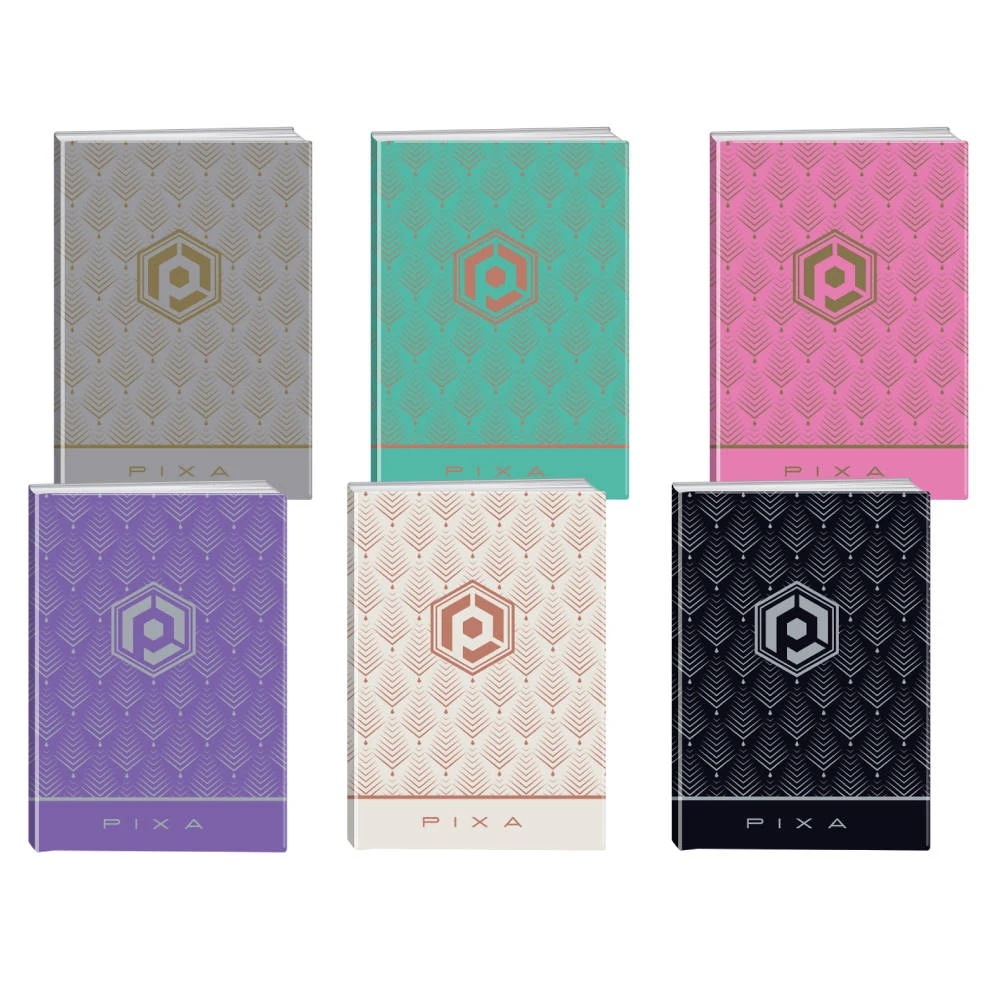 Exclusive 200 A4 lined notebook by Pixa with 200 sheets for intensive note-taking. Trend-forward cover showcases a geometric pattern with metallic accents in assorted contemporary colors. Clean ruling and solid build ensure daily reliability and strong shelf appeal.