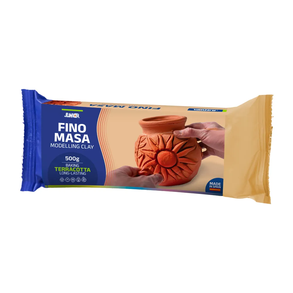 Fino masa modeling clay, terracotta, 500 g. Bakeable clay that cures to a durable, long-lasting finish in classic terracotta. The warm tone suits contemporary craft and décor lines. Made in Spain for dependable quality and supply.