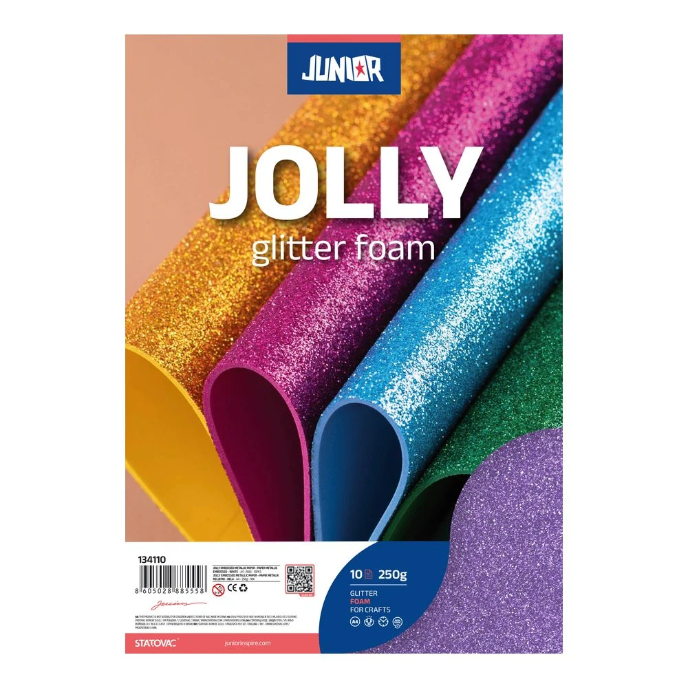 Violet glitter EVA foam sheets with a trendy, sparkling finish for standout crafts and displays. A4 format, 2.0 mm thickness, pack of 10. Lightweight, flexible, and easy to cut for clean shapes—ideal for retail decorations, school projects, signage, and creative packaging accents.