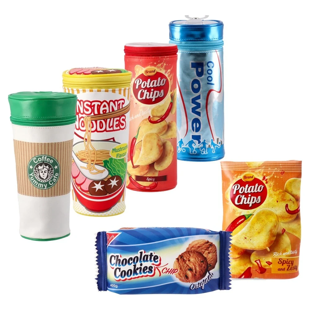 Be Cool Foodie pencil case mix brings snack-and-drink packaging style to stationery. Assorted cases in pouch and cylinder shapes with vivid prints and secure zip closure. Trendy, giftable look for school and office; ideal for retail displays and impulse purchases.