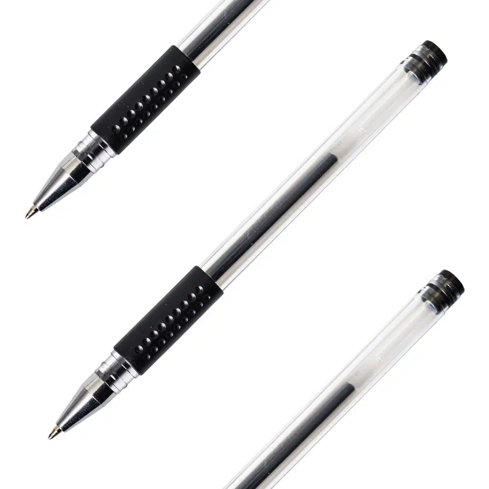 G-1000, gel pen, black, 0.7mm. Modern, transparent plastic barrel highlights the ink channel for easy monitoring. Precision 0.7mm point with a metallic tip housing for crisp lines. Textured rubber grip enhances control. Capped design protects the tip. Professional, office-ready styling.