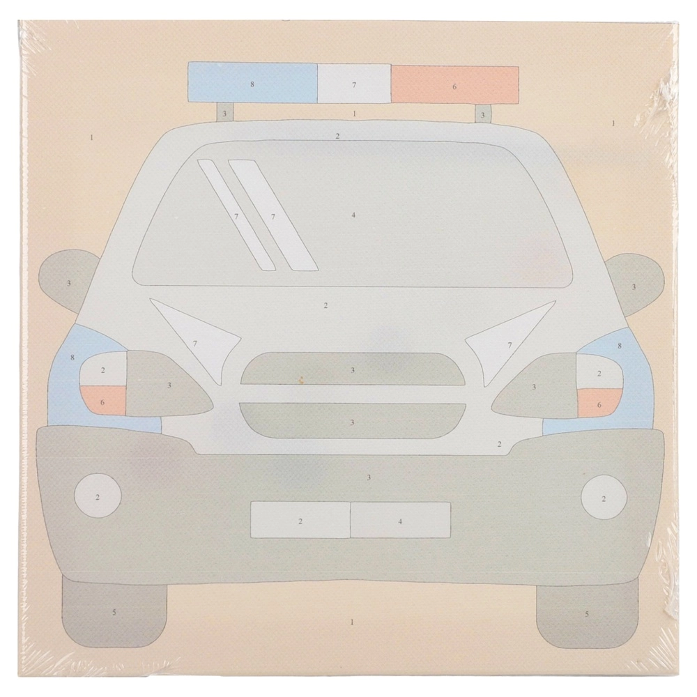 Compact 20×20 cm white canvas with a pre-printed police car sketch on a sketch blind frame. The graffiti-inspired theme delivers a trendy, giftable art project. Includes paint. Ideal for craft aisles, workshops, and impulse sales thanks to its easy-to-finish, display-ready format.