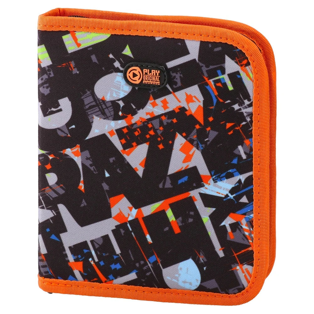 Grande, empty pencil case, Letters. Trend-forward letter graphic with vivid accents and bright orange trim. Durable fabric with reinforced edging for daily use. Roomy interior for pens and small accessories. High shelf appeal for school and office assortments.