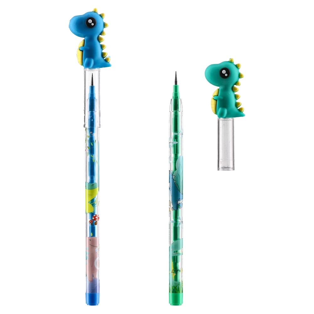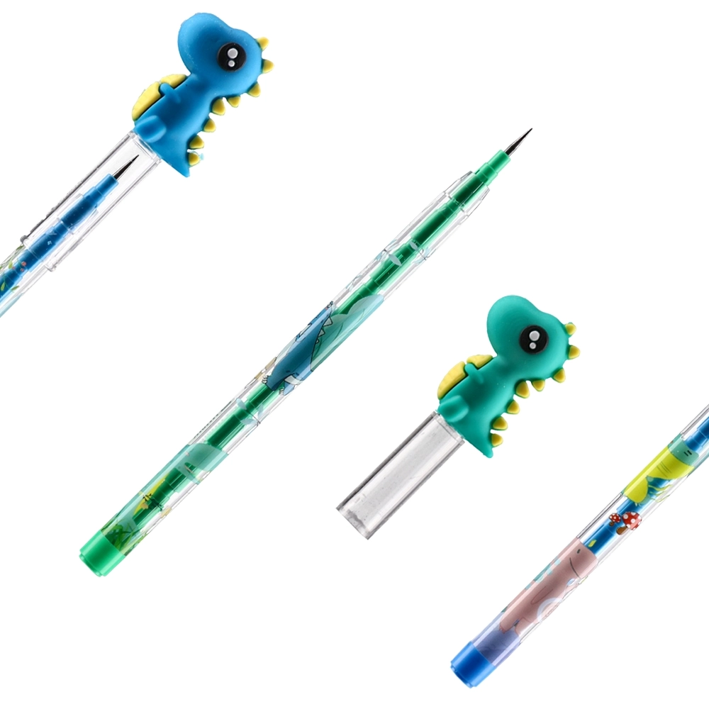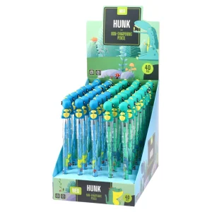 Hunk, non-sharpening pencil, mix, Dino. Clear barrel with dinosaur graphics and a 3D dino topper delivers strong shelf appeal. Non-sharpening design is ready to use. Durable plastic construction with protective tip cap. Ideal for school ranges, gifts, and impulse displays.