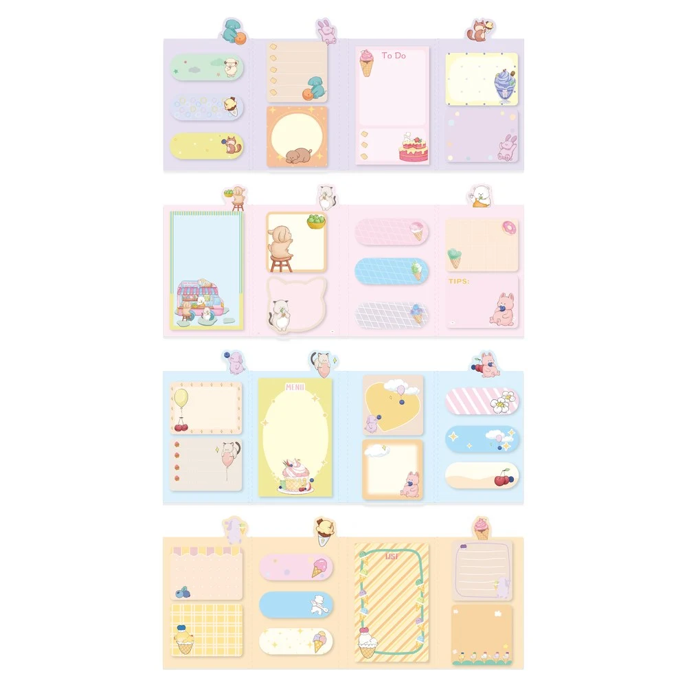 Indice 110 Sticky Notes, Sweet Animals. Mix of 6 pads, 20 sheets each. Pastel ice-cream scenes with die-cut animal tabs for quick indexing. Smooth paper with vivid print. Trend-forward design that attracts impulse buys; practical for planners, study notes, and reminders.