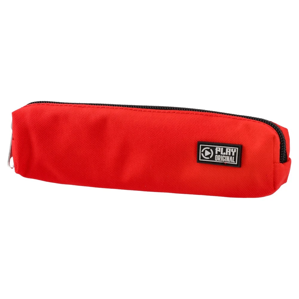 JP, pencil case, red 25: a slim, contemporary zip pouch in vivid red. Built from durable woven fabric with neat stitching and a smooth top zipper. Compact yet practical for pens and small tools. A clean silhouette and front logo patch enhance shelf appeal and brand visibility.