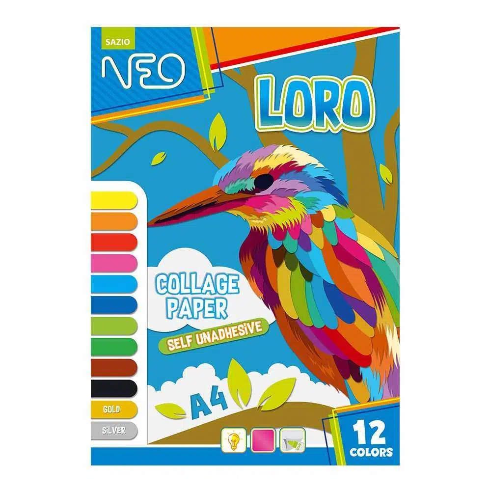 Loro, collage paper, 12 colors self unadhesive, A4