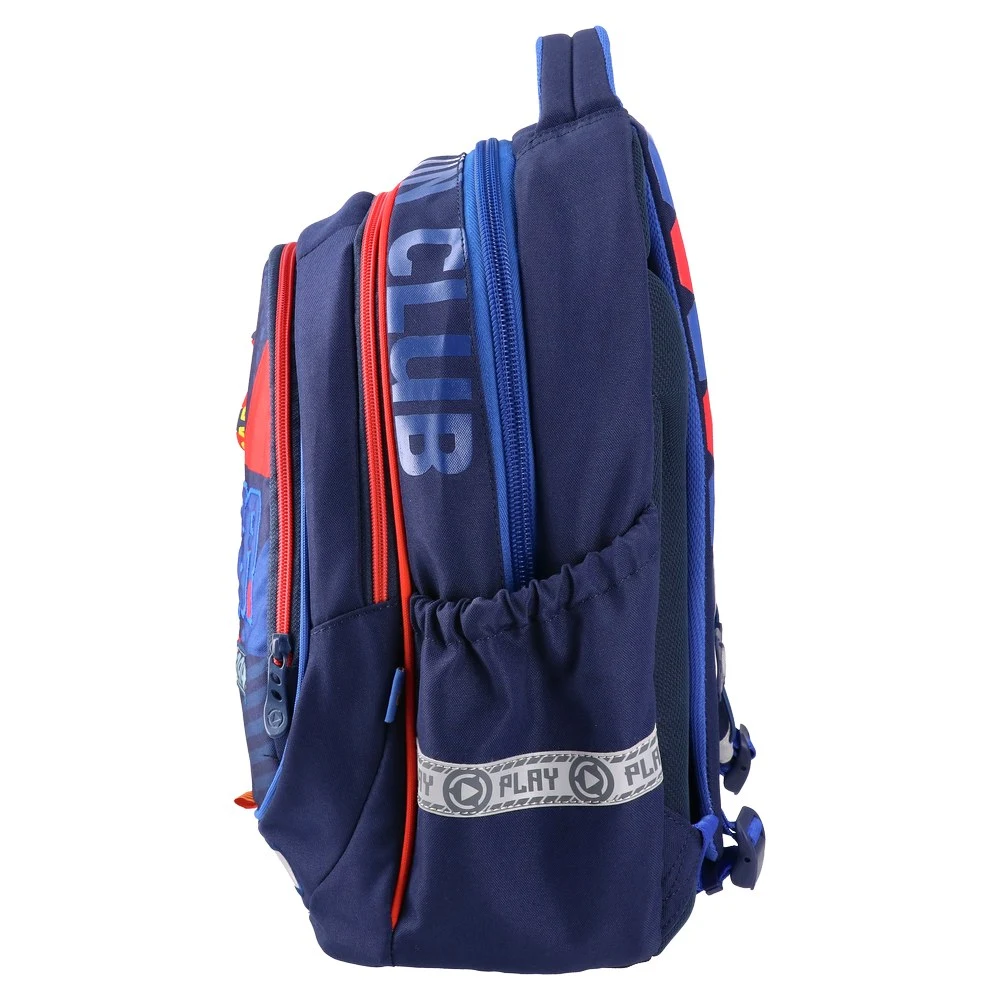 Maxx anatomic backpack in Barca Motion design delivers standout shelf appeal with bold navy/red graphics, large BARCA lettering and club crest. Features multiple zip compartments, front pocket, elastic side pocket, top carry handle and reflective detail for added visibility.