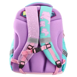 Maxx, anatomic backpack, Unicorn Style features trend-forward pastel pink, purple, and mint with a large unicorn graphic and embroidered “UNICORN STYLE” lettering. Includes multiple zip compartments, front pocket, side pocket, and a padded top handle. PLAY brand badge for added appeal.