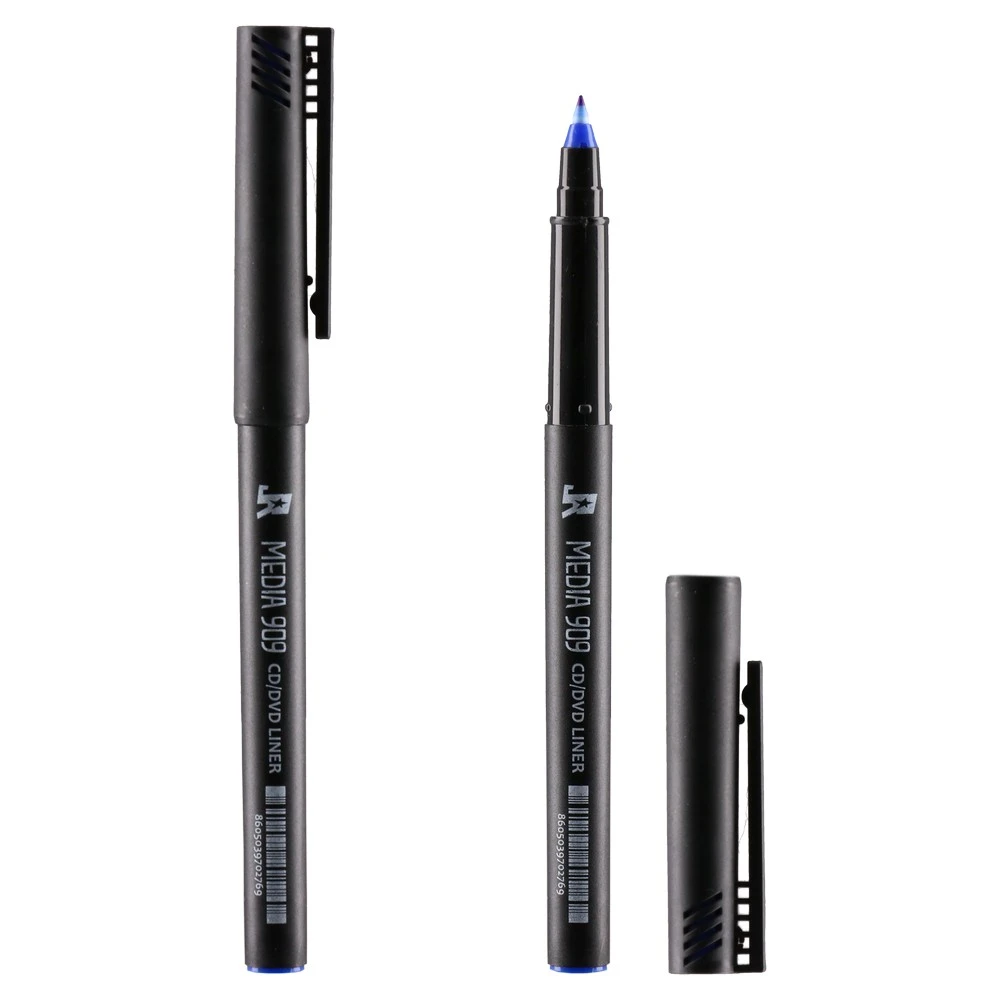 Media 909, liner for CD, 0.6mm, blue. Sleek matte-black barrel with slotted clip cap and fine 0.6 mm tip for accurate disc marking. Made for CD/DVD surfaces, it writes clear, consistent blue lines. Professional look and dependable quality for media labeling.